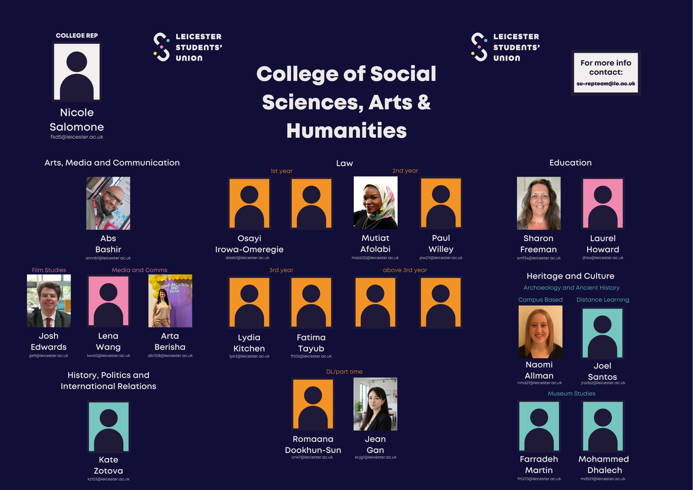 Social Sciences, Arts and Humanities College Rep - Grace Lewis-Bettison (su-cssahcollegerep@le.ac.uk)